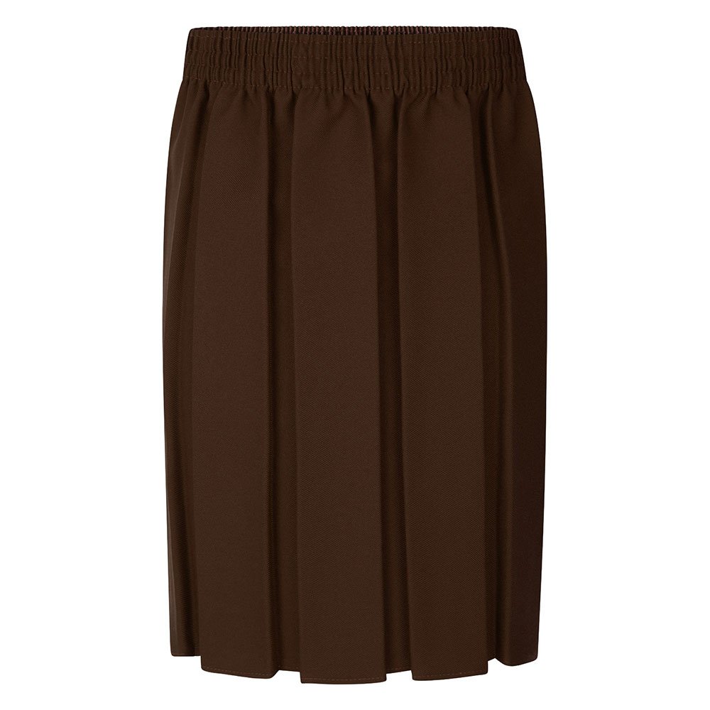 Plain Brown Boxpleat Style Long Length Skirt With Elasticated Waist,