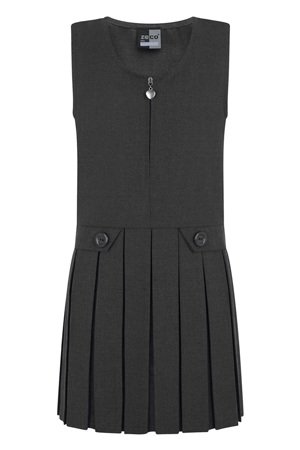 Plain Charcoal Grey Front Zip Pinafore With Two Buttons And A Pleats,